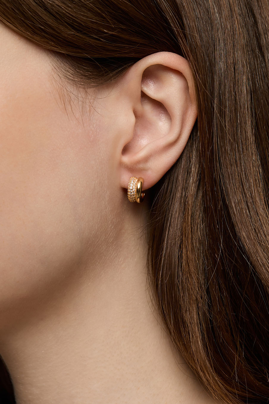 Kaksinkertaiset, paksut korvarenkaat 18k kullalla kullattua aitoa hopeaa koristeltuina Cubic Zirconia -kivillä.
