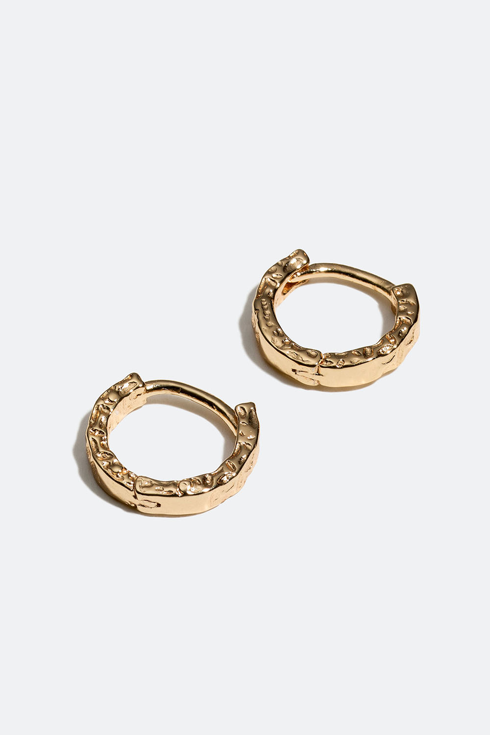 18 karaatin kullatut aidot hopeiset minikorvarenkaat, joissa on taottu pinta. Tyylikkäät korvakorut, joissa on strukturoitu pinta, joka sopii täydellisesti sekä arkeen että hienoon iltaan kaupungilla.