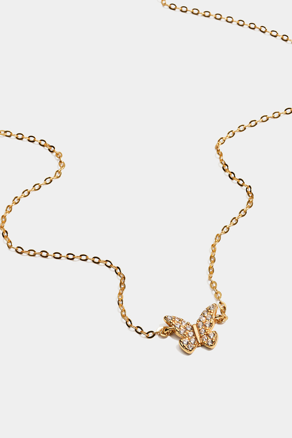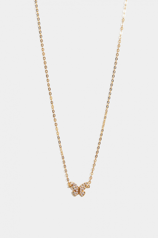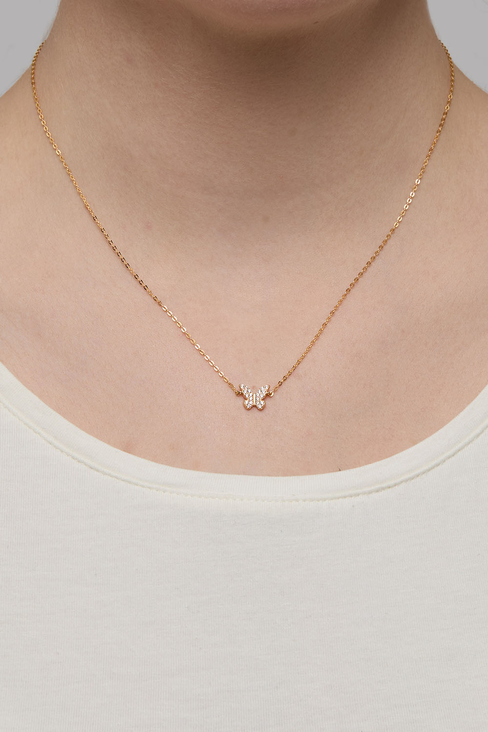 18k kullalla kullattu aito hopeakaulakoru, jossa on Cubic Zirconia -kivillä koristeltu perhonen.