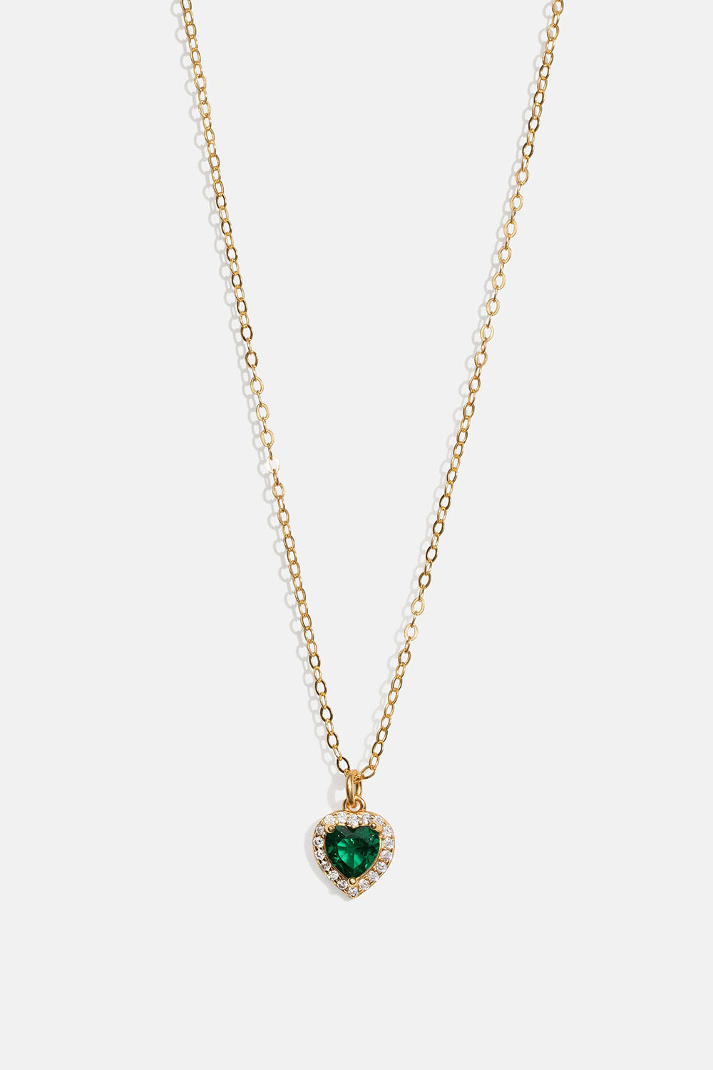 Aidosta 18k kullatusta hopeasta valmistettu kaulakoru, jossa sydämenmuotoinen riipus ja vihreä Cubic zirconia -kivi ryhmässä Korut / Kaulakorut / Kaulakorut riipuksella @ Glitter (554001037502)