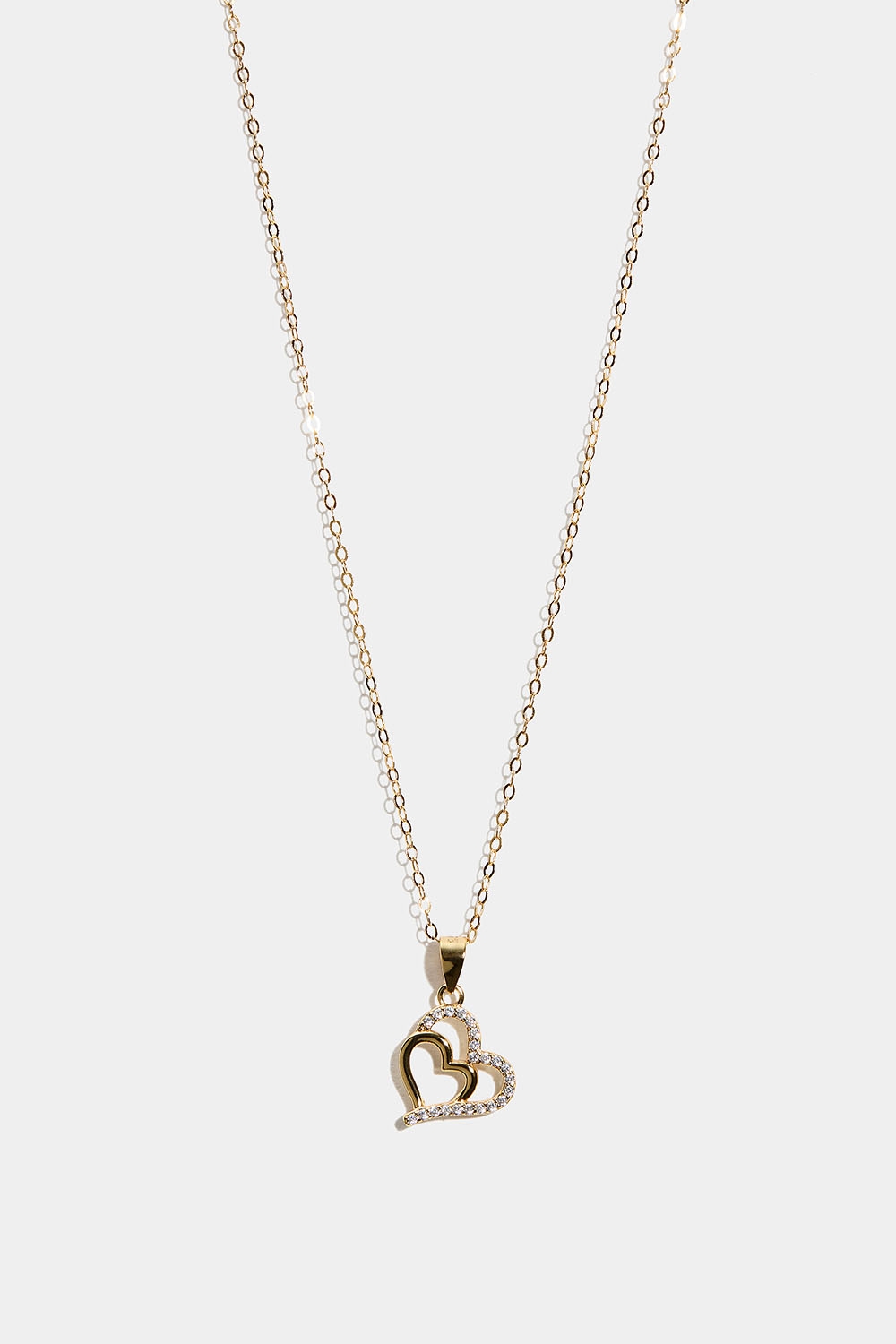 Aito 18k kullattu hopeakaulakoru, jossa on ohut ketju ja tuplasydänriipus, joka on koristeltu pienillä Cubic zirconia -kivillä.