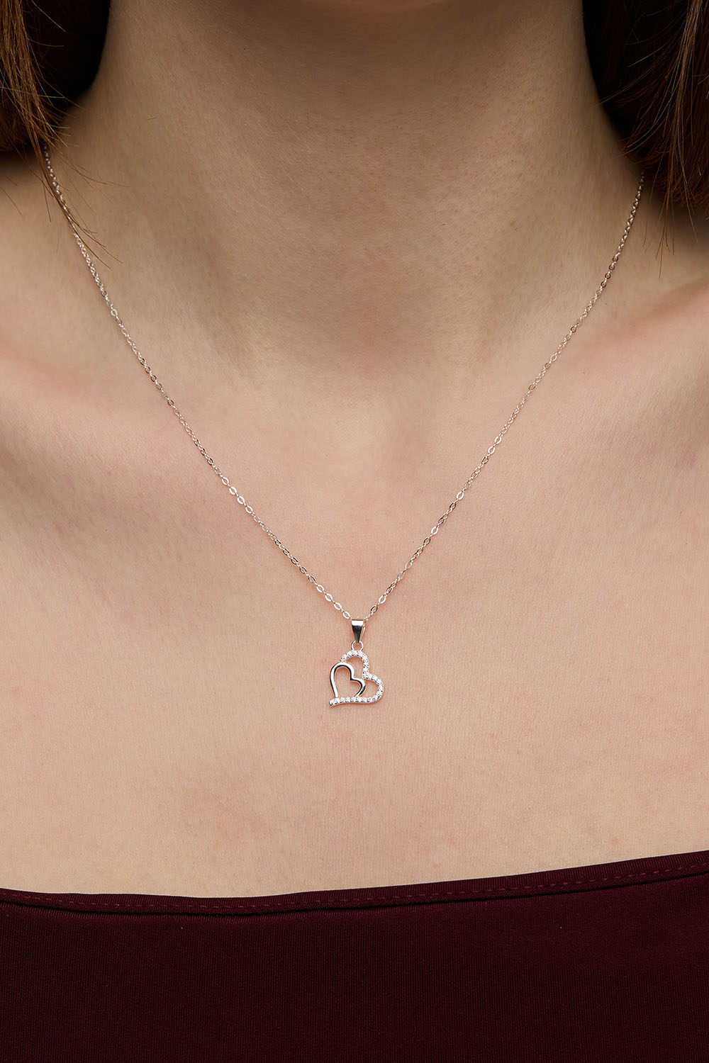 Aidosta hopeasta valmistettu kaulakoru, jossa on tuplasydän ja Cubic Zirconia -kivi