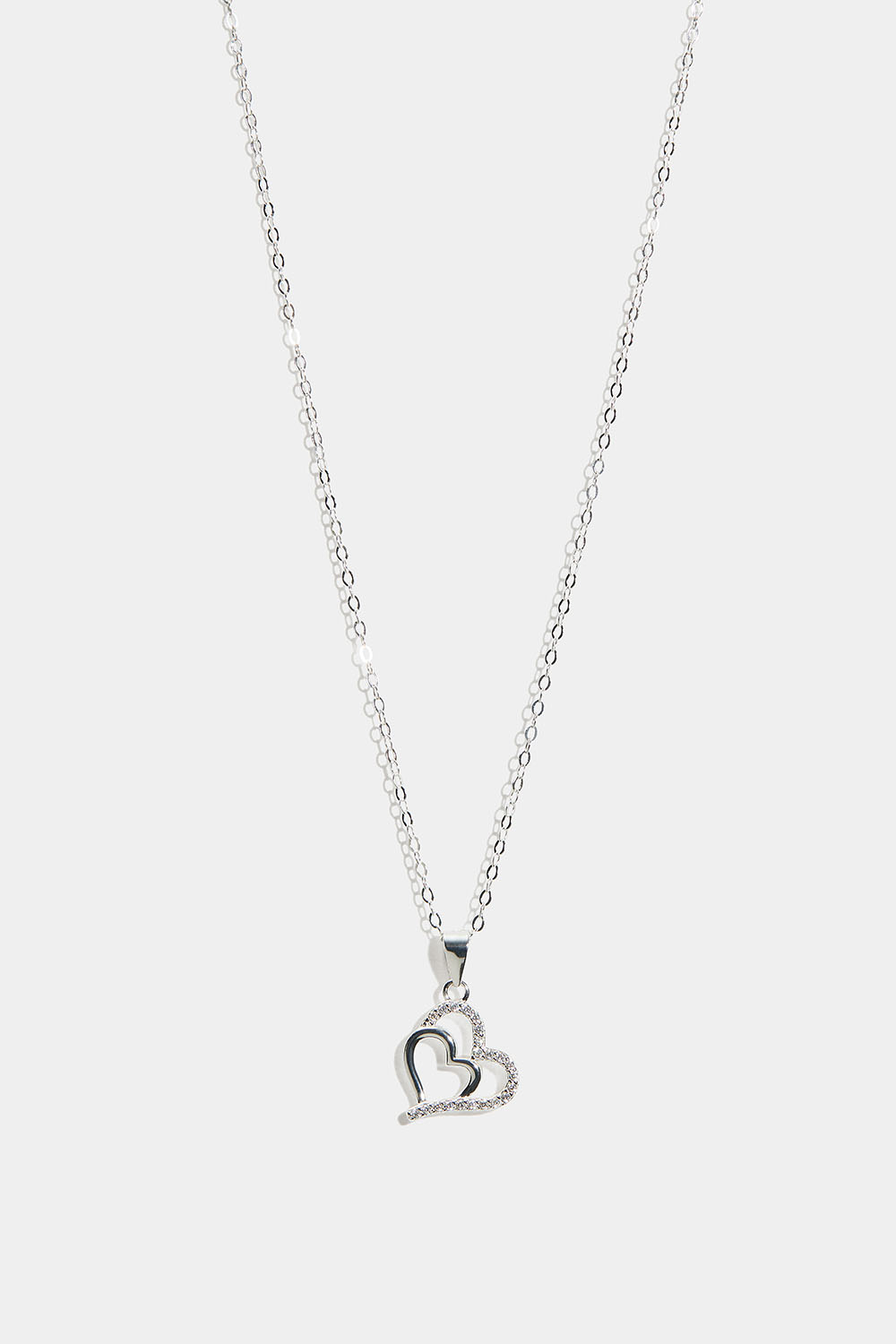 Aidosta hopeasta valmistettu kaulakoru, jossa on tuplasydän ja Cubic Zirconia -kivi ryhmässä Aitoa Hopeaa / Hopeiset kaulakorut / Kaulakorut riipuksella @ Glitter (554001441001)