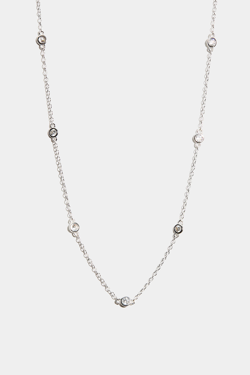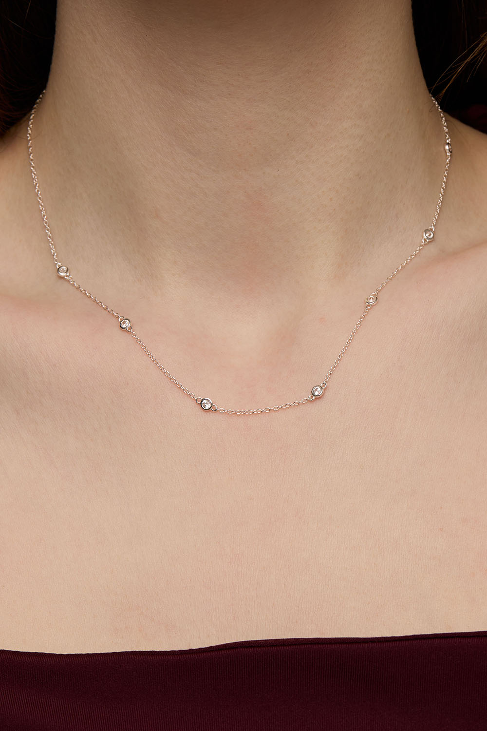 Aidosta hopeasta valmistettu kevyt kaulakoru, jossa on pieniä pyöreitä Cubic Zirconia-kiviä koko ketjun matkalla.