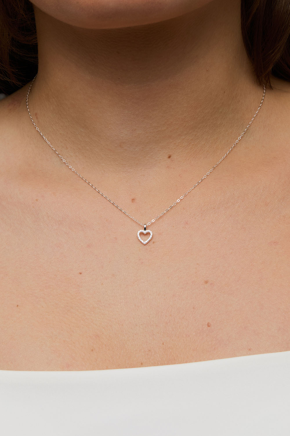 Aidosta hopeasta valmistettu kaulakoru, jossa sydän ja Cubic zirconia -kiviä