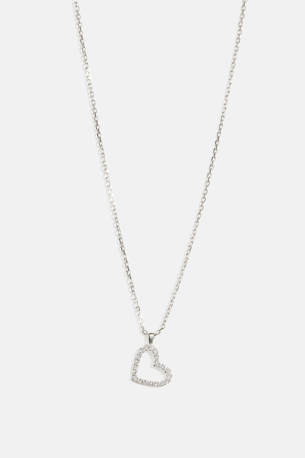 Aito hopeakaulakoru, jonka sydämen muotoinen riipus on koristeltu pienillä valkeilla Cubic zirconia -kivillä