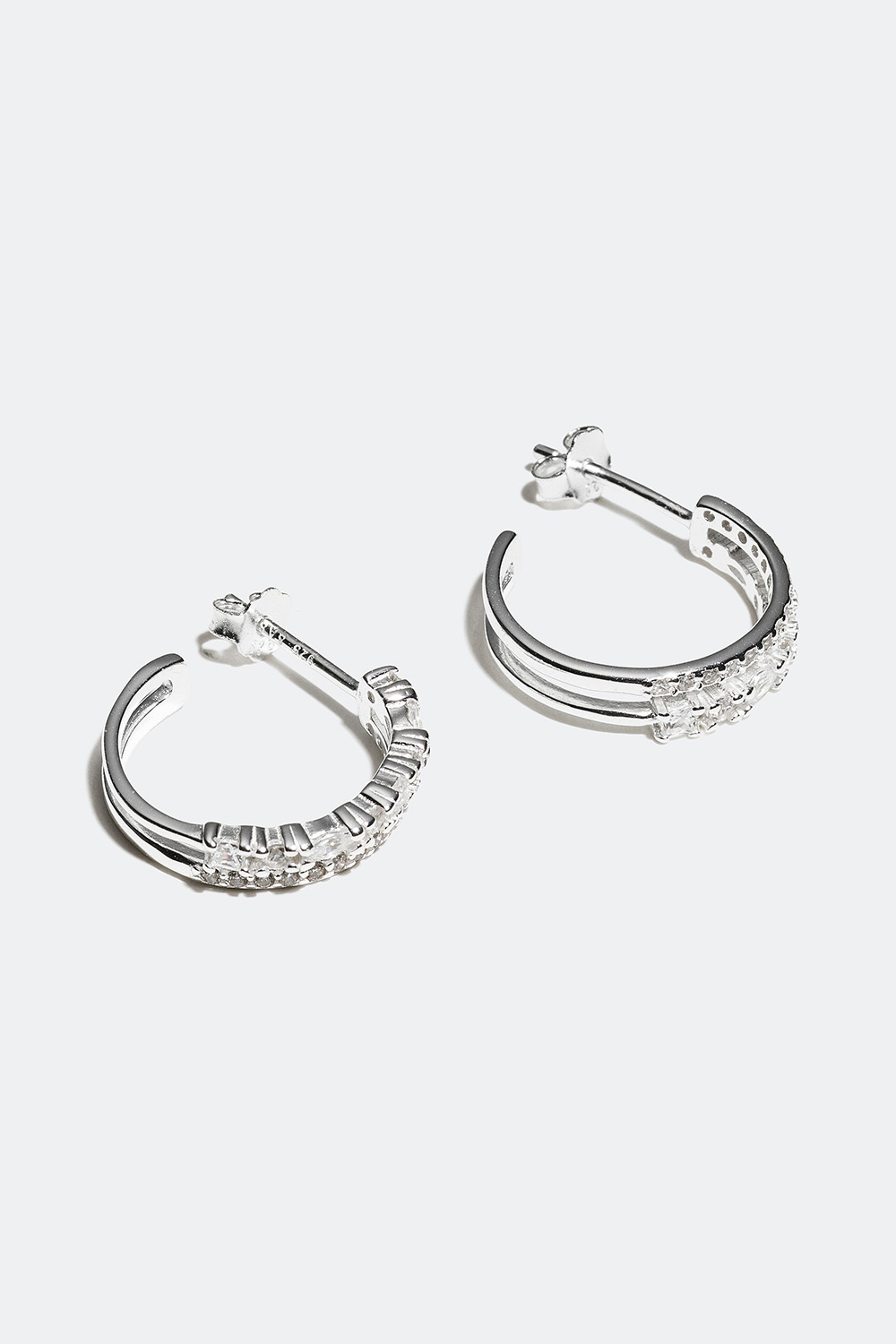 Aidosta hopeasta valmistetut kaksinkertaiset korvarenkaat Cubic Zirconia -kivellä ryhmässä Aitoa Hopeaa / Hopeiset korvakorut / Korvarenkaat aitoa hopeaa @ Glitter (553001711000)
