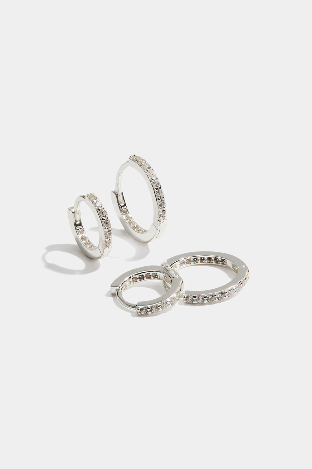 2 paria korvarenkaita aidosta hopeasta, koristeena Cubic zirkonia -kiviä.
