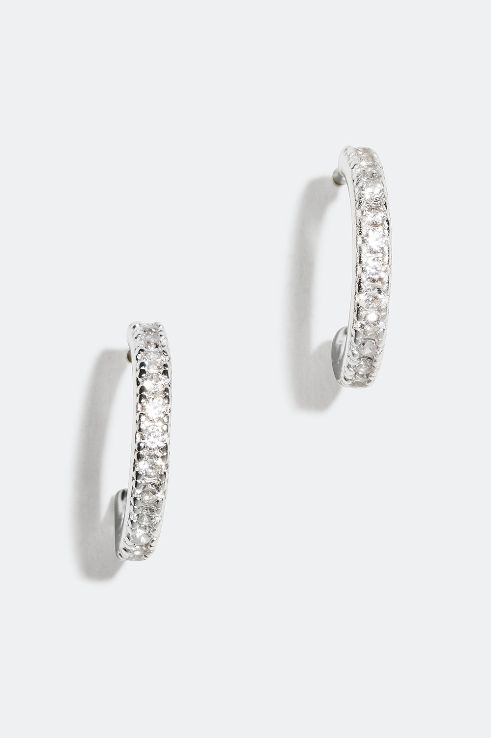 Aidosta hopeasta valmistetut korvarenkaat, joissa kiviä ympärillä ryhmässä Aitoa Hopeaa / Hopeiset korvakorut / Korvarenkaat aitoa hopeaa @ Glitter (553002050201)