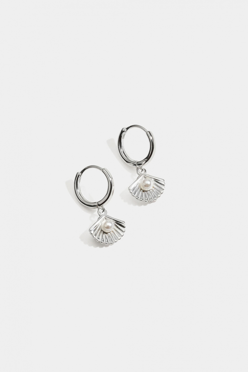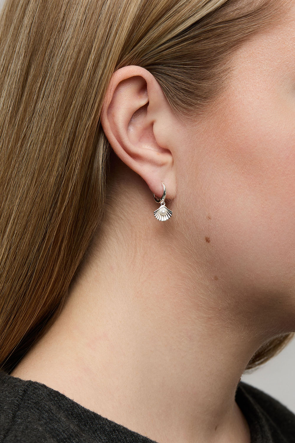 Aidosta hopeasta valmistetut korvarenkaat, joissa on simpukoita ryhmässä Aitoa Hopeaa / Hopeiset korvakorut / Korvarenkaat aitoa hopeaa @ Glitter (553005571001)