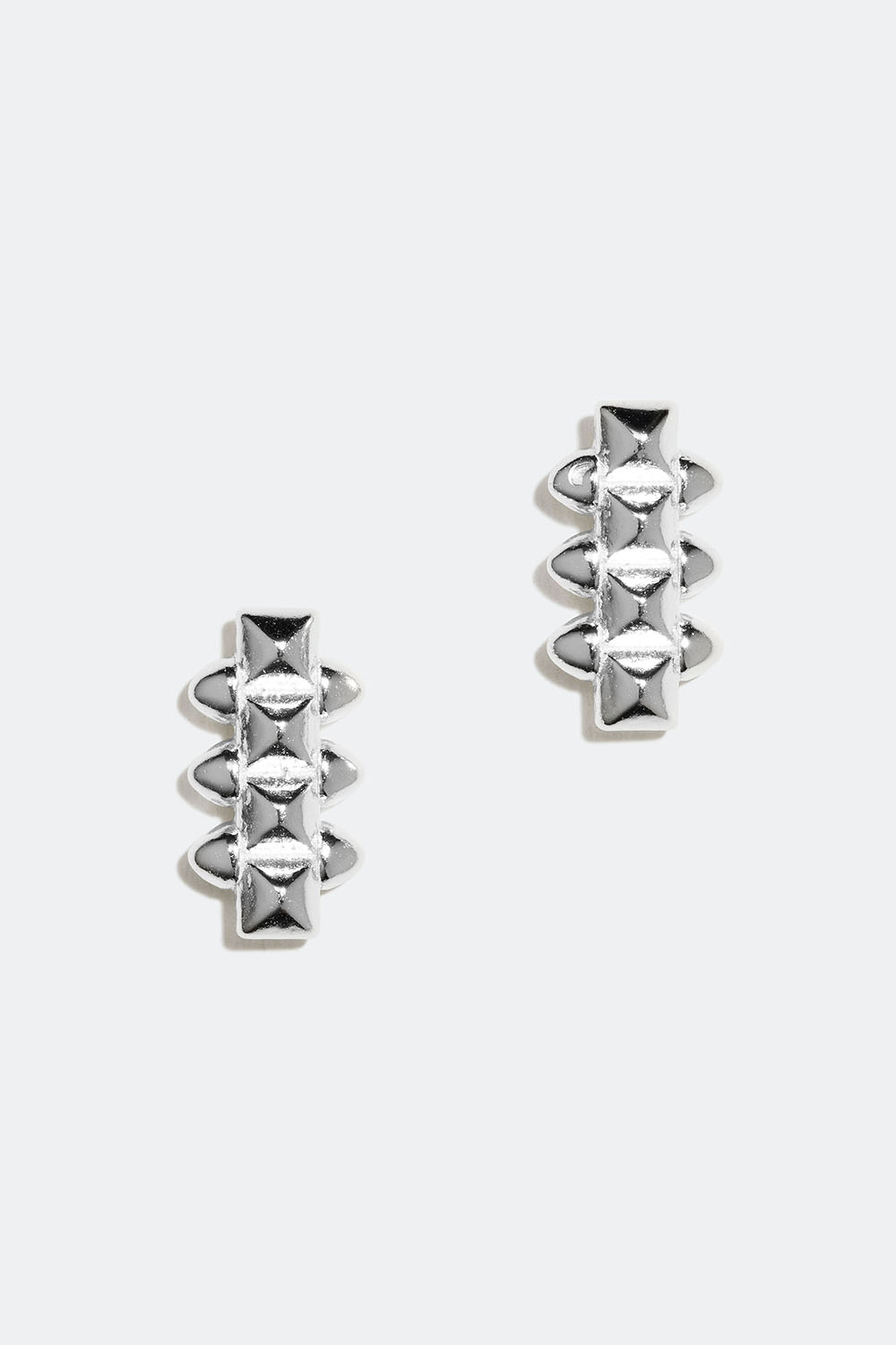 Aidosta hopeasta valmistetut pienet korvakorut, joissa on kuvioitu design. Korvakoruissa on neliömäinen kuviointi ja piikikkäät sivut. Koristeelliset korvakorut, jotka sopivat kaikkiin tilanteisiin.