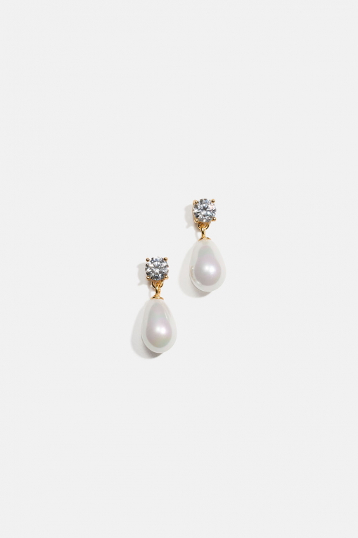 Aidot 18k kullatut hopeakorvakorut, joissa Cubic zirconia -kiviä ja riippuva helmi ryhmässä Store week / @ Glitter (553005302002)