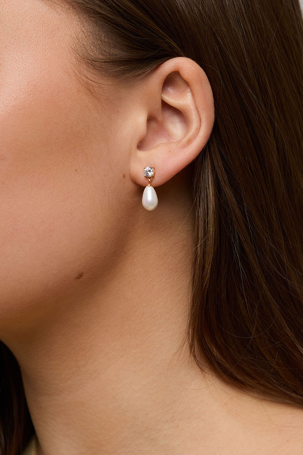 Aidot 18k kullatut hopeakorvakorut, joissa on Cubic zirconia -kiviä ja riippuva helmi.