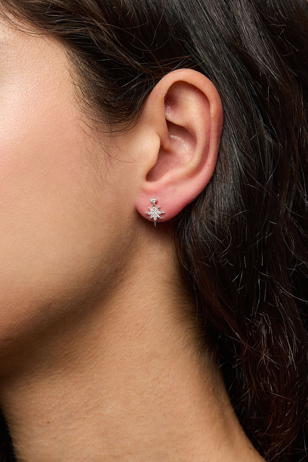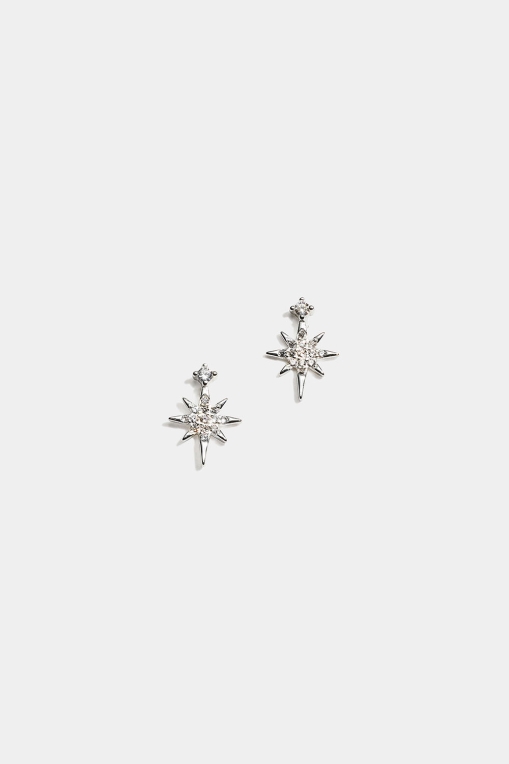 Aidot hopeakorvakorut, joissa on Cubic Zirconia -kiviä ja tähti ryhmässä Aitoa Hopeaa / Hopeiset korvakorut / Nappikorvakorut aitoa hopeaa @ Glitter (553004761001)
