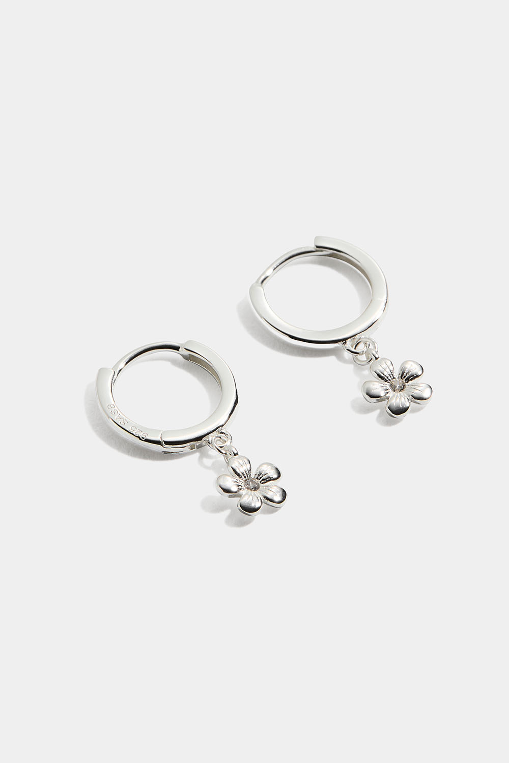 Aidot hopeakorvarenkaat, joissa kukkia ryhmässä Aitoa Hopeaa / Hopeiset korvakorut / Korvarenkaat aitoa hopeaa @ Glitter (553004341001)