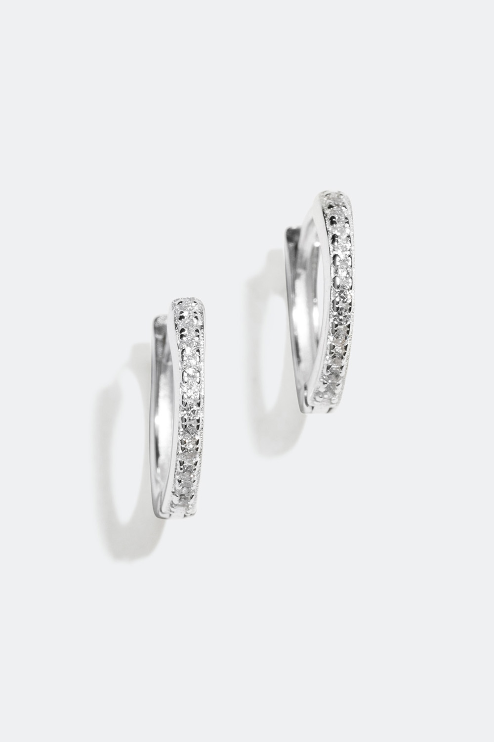 Aidot hopeakorvarenkaat, joissa on kiviä etupuolella ryhmässä Aitoa Hopeaa / Hopeiset korvakorut / Korvarenkaat aitoa hopeaa @ Glitter (326691011000)
