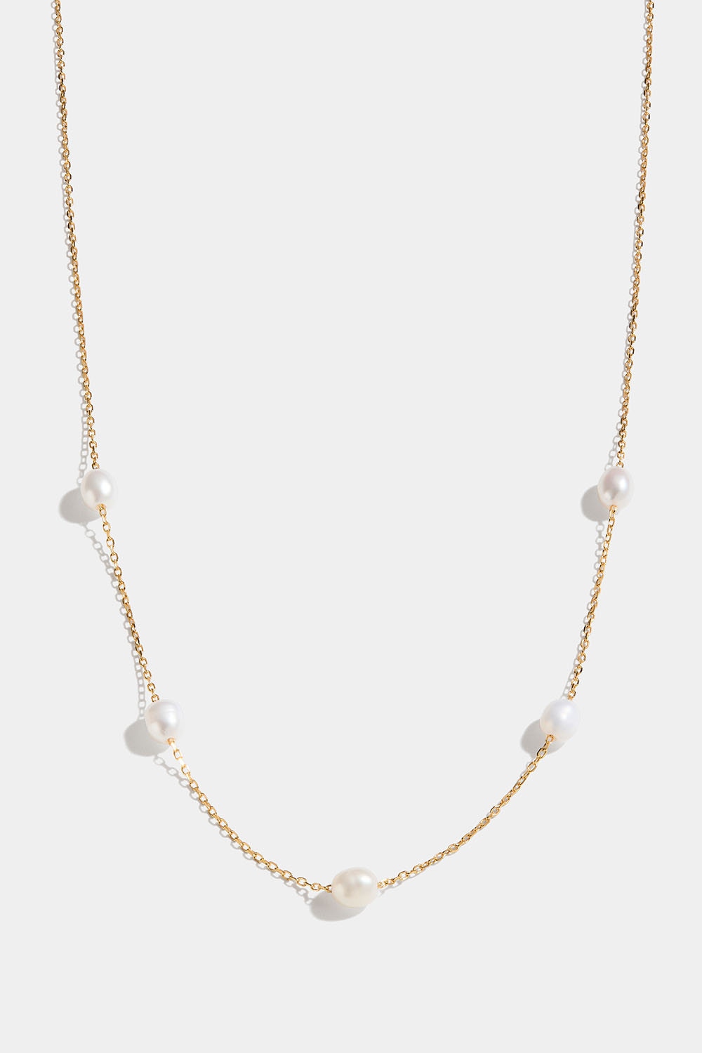 Aito 18k kullattu ohut hopeakaulakoru, jossa on makeanvedenhelmiä.