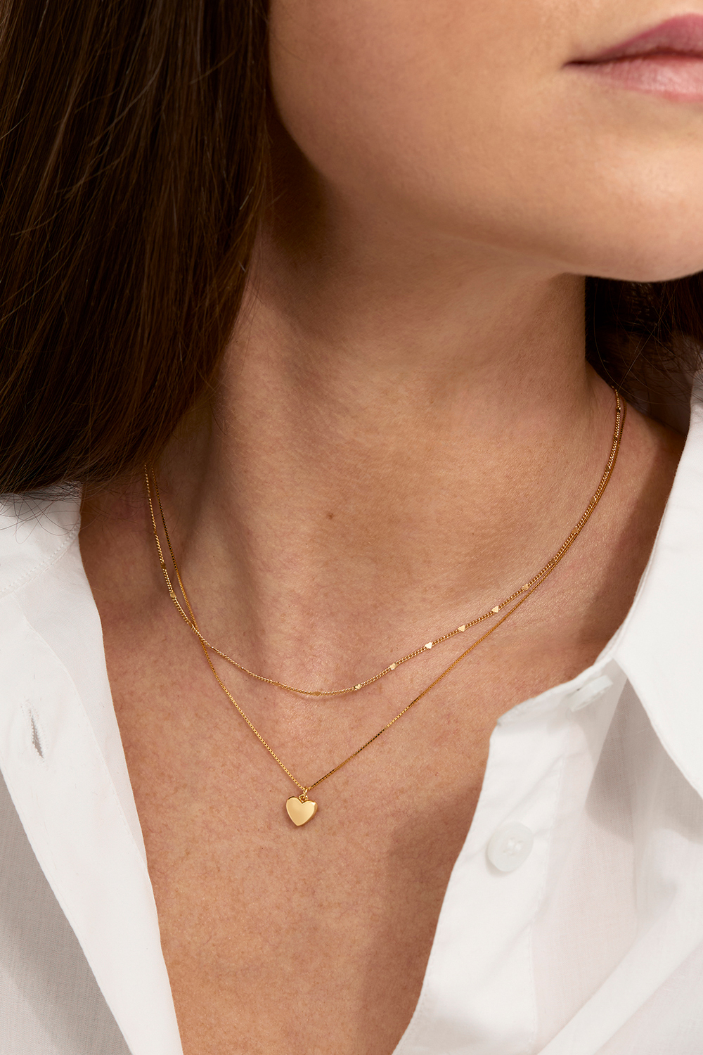 Ohut 18k kullattu kaulakoru, jossa on sydänriipus.