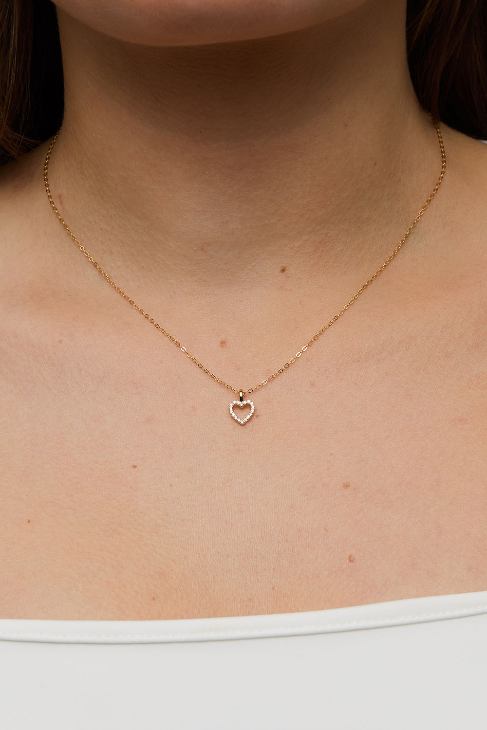 Kaulakoru 18k kullatusta hopeasta. Sydämenmuotoinen riipus on koristeltu pienillä Cubic zirconia -kivillä.
