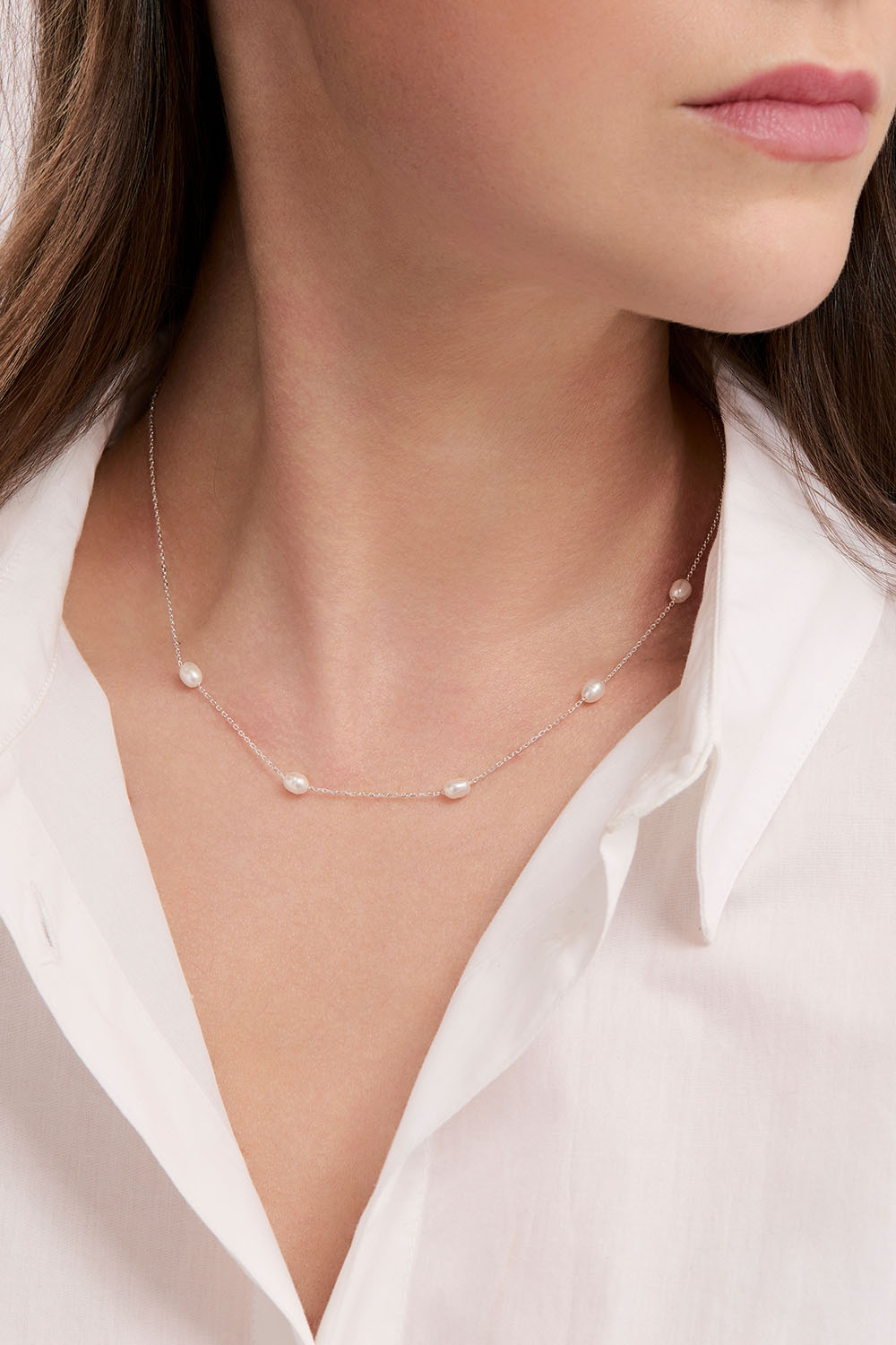 Aito hopeakaulakoru, jossa soikeita helmiä ryhmässä Aitoa Hopeaa / Hopeiset kaulakorut @ Glitter (554001111001)
