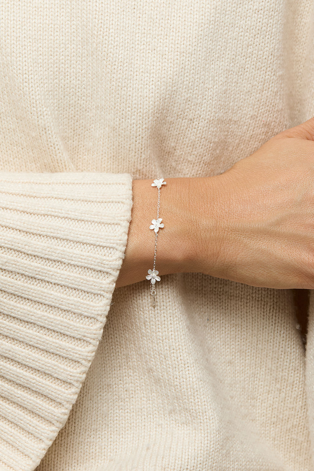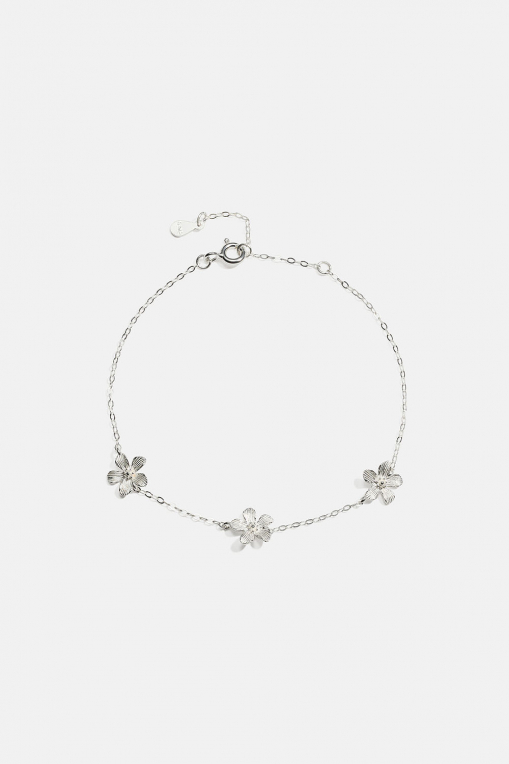 Aito hopearannekoru, jossa teksturoituja kukkia ryhmässä Aitoa Hopeaa / Hopeiset rannekorut / Kapeat @ Glitter (551001031001)