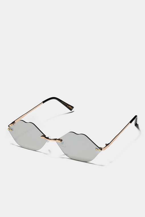 Aurinkolasit, joissa on huulten muotoiset peililinssit. Koristeelliset aurinkolasit, joissa on metallikehykset.