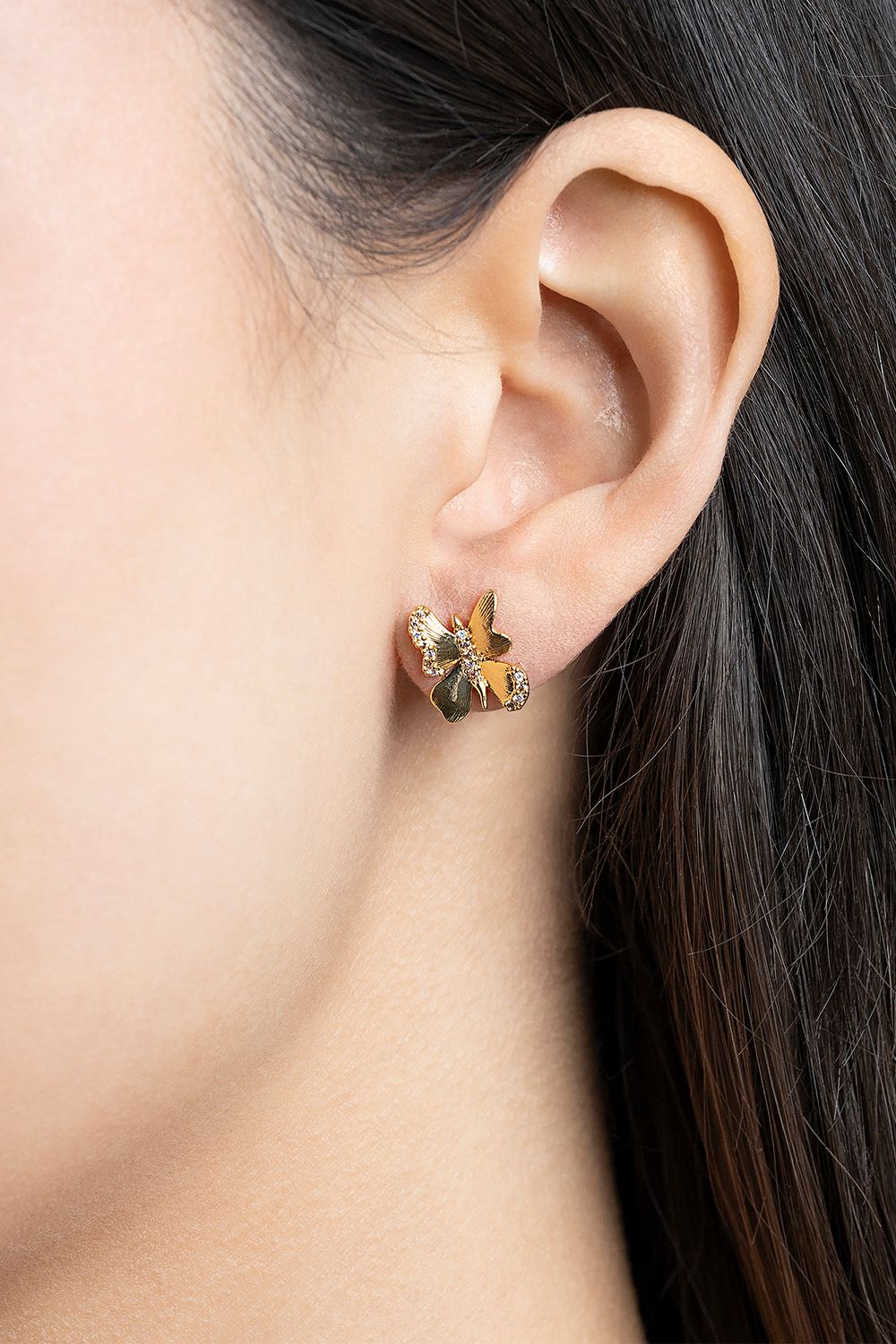Ota luonnon kauneus haltuun näillä viehättävillä perhoskorvakoruilla, jotka on koristeltu pienillä kristalleilla leikkisän ja naisellisen tunnelman luomiseksi. Yhdistele helposti muiden Brigitte-mallistomme kappaleiden kanssa.