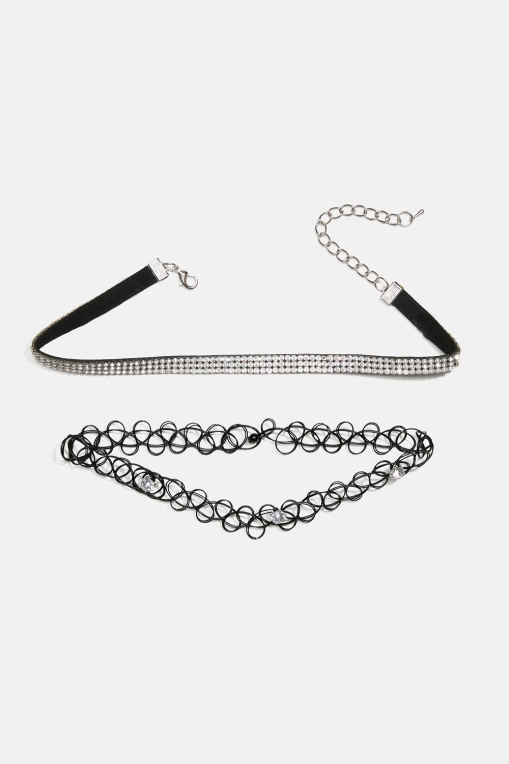 Choker-kaulakorut, joissa strassikiviä, 2 kpl