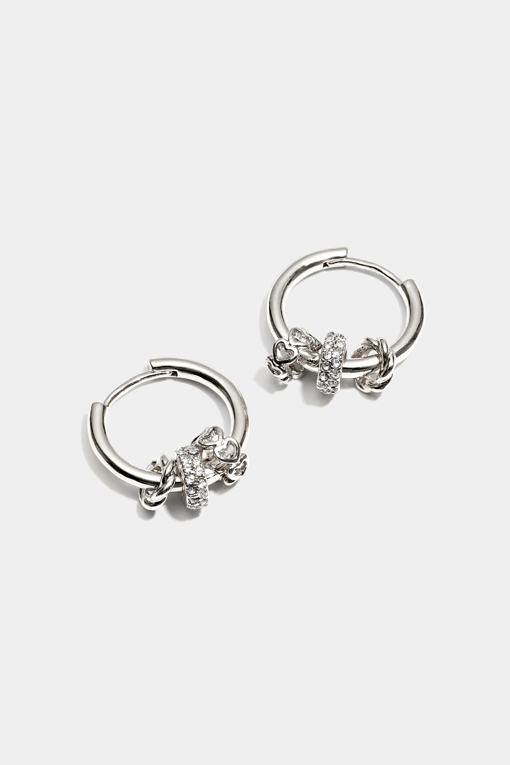 Klassiset hopeanväriset metallikorvarenkaat kolmella pyöreällä riipuksella, joista yksi on sydän.