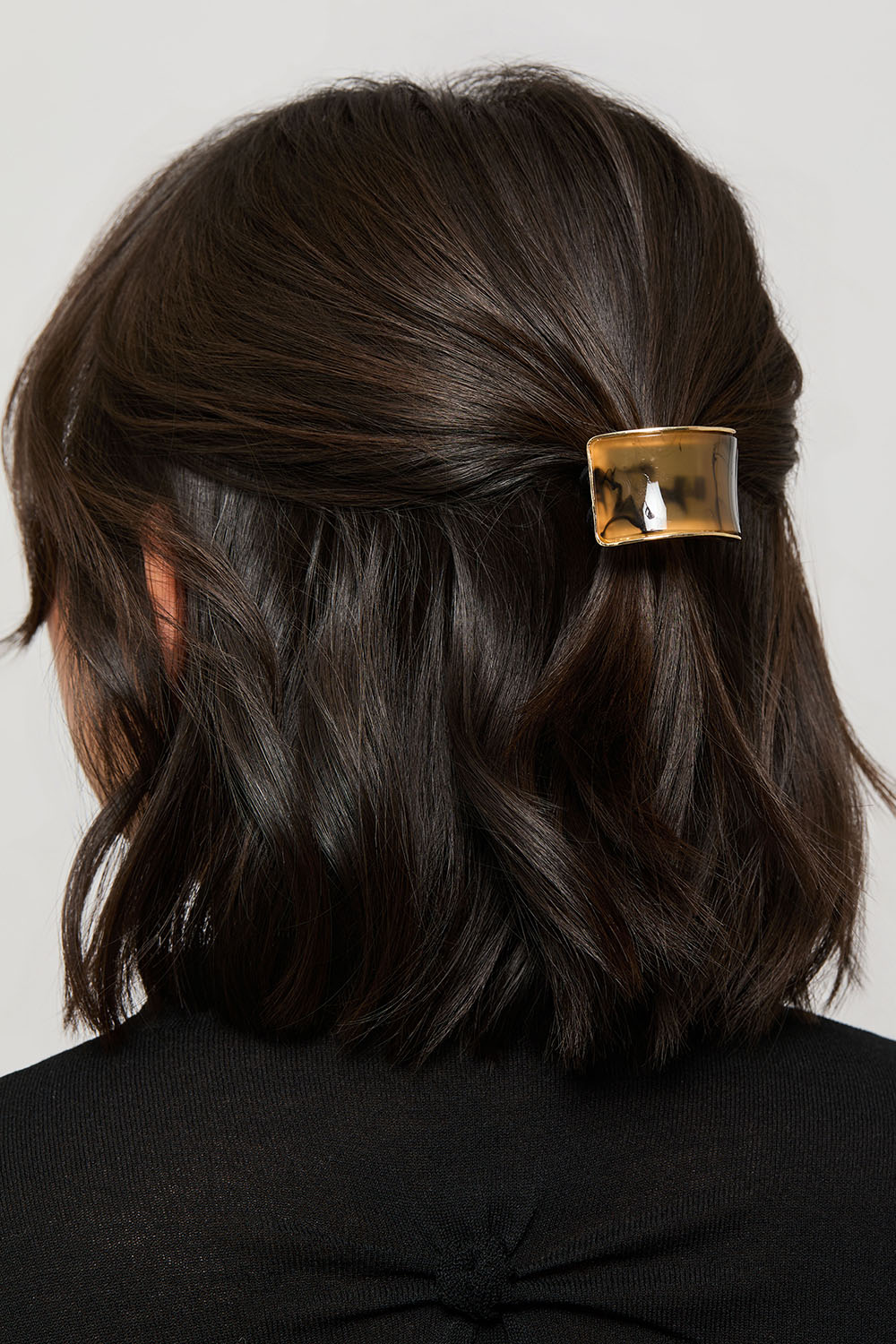 Hiuslenkki, jossa on marmoroitu ruskea koriste.