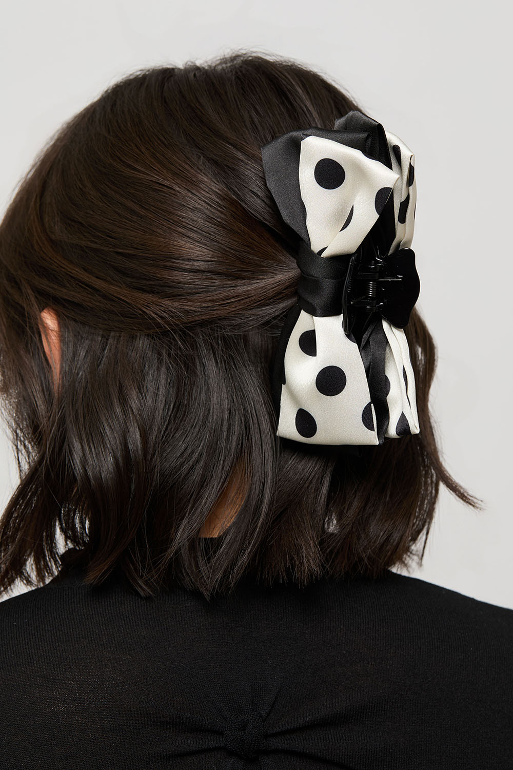 Hiussolki, jossa pilkullinen musta kangasrusetti keinosilkistä ryhmässä Hiustuotteet / Hiuspinnit ja -klipsit / Hiusklipsit @ Glitter (331001929400)