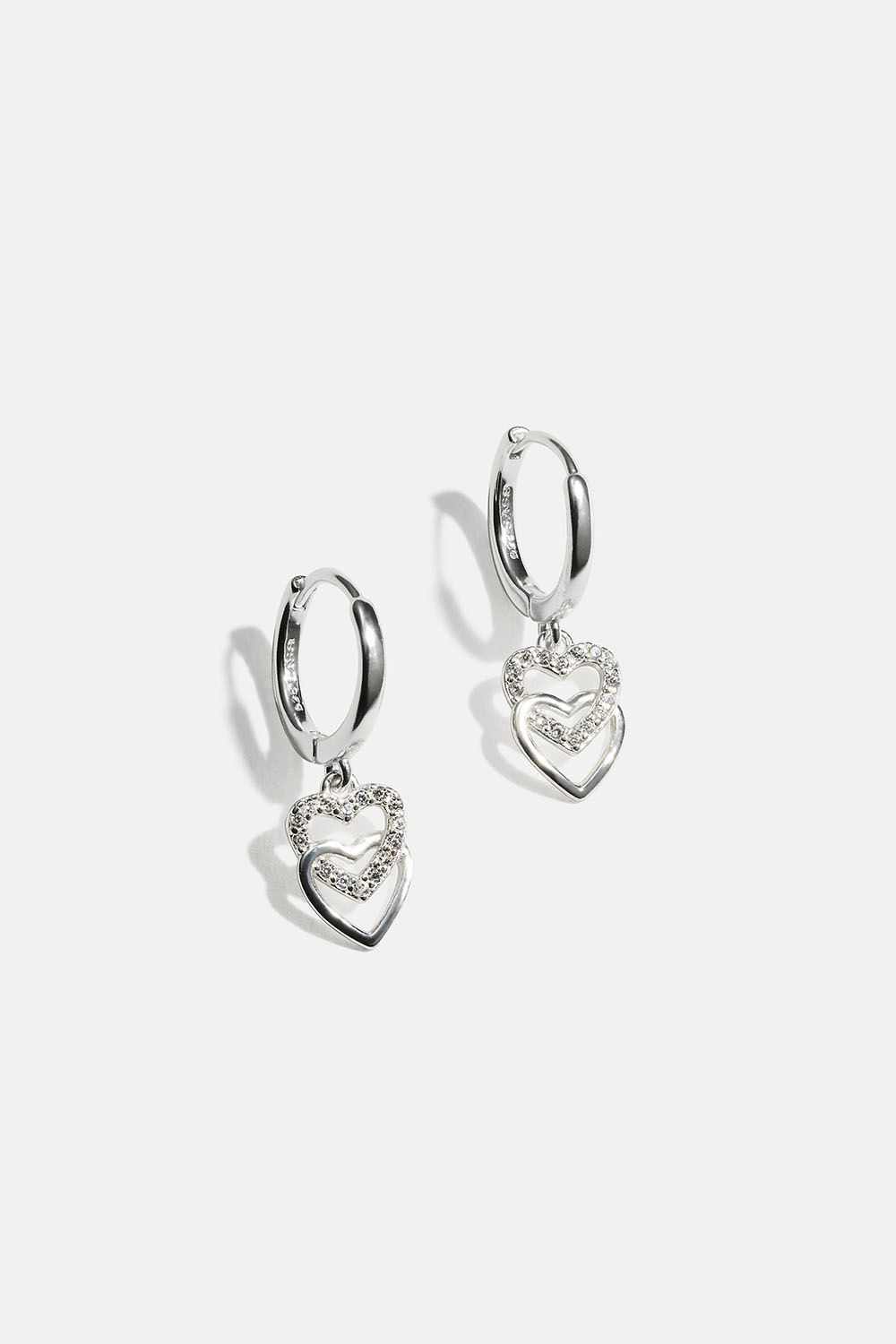 Hopeakorvarenkaat, joissa on tuplasydänriipukset ryhmässä Korut / Korvakorut / Korvarenkaat / Korvarenkaat riipuksilla @ Glitter (553004821001)