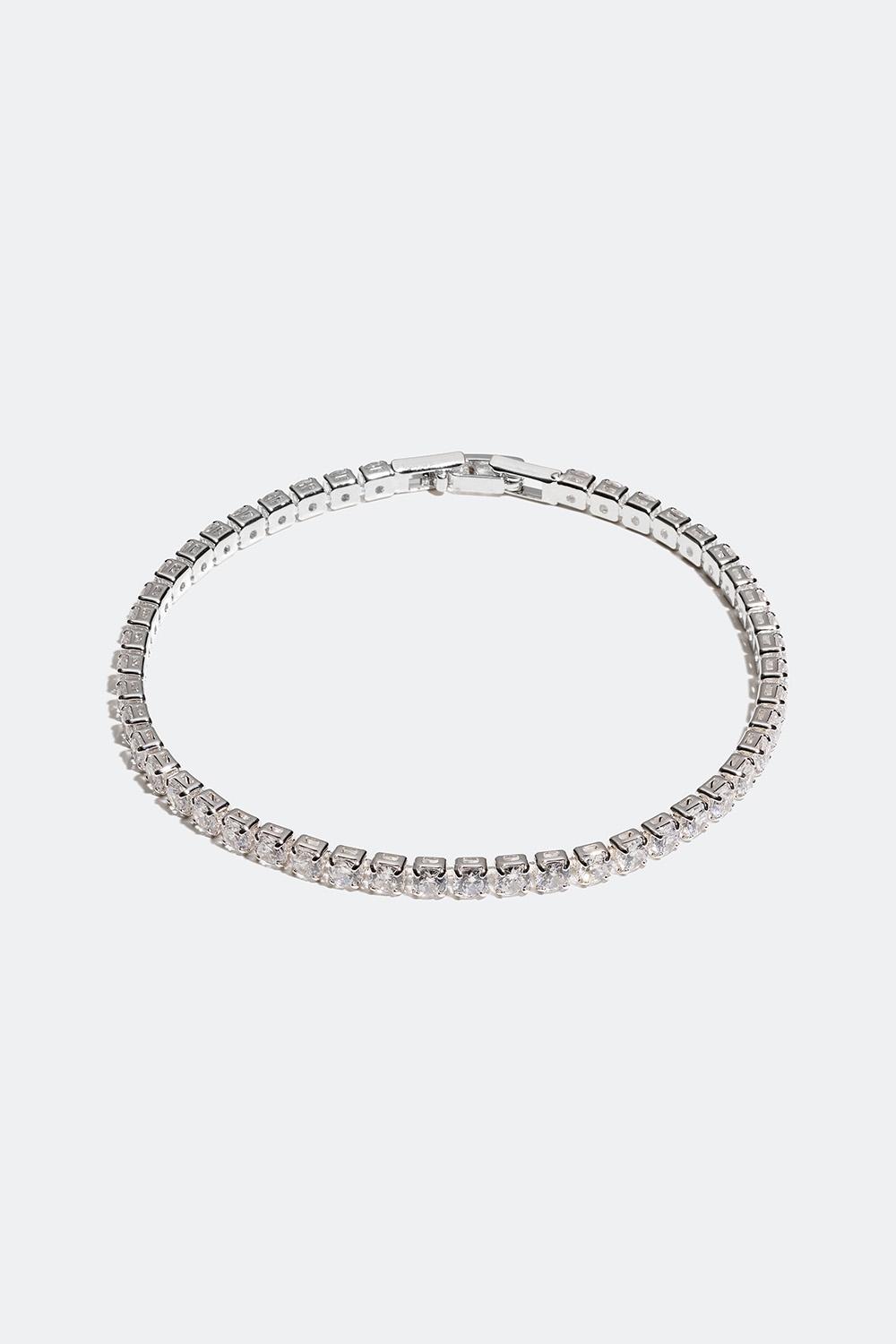 Hopeanvärisestä metallista valmistettu kapea 3 mm:n tennisrannekoru, jossa on kirkkaita lasikiviä. Tyylikäs ja muotoilultaan ajaton rannekoru. Korua voi käyttää yksinään, mutta sen voi myös yhdistää muihin rannekoruihin tai erilaisiin tennisrannekoruihin täydellisen ilmeen saamiseksi juhliin ja muihin tilaisuuksiin.