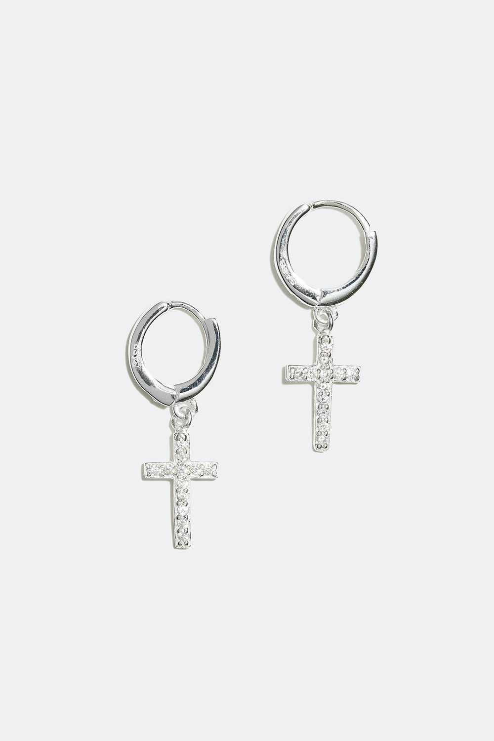 Pienet korvarenkaat aitoa hopeaa. Renkaissa risti, jossa koristeena hohtavia Cubic Zirconia -kiviä.