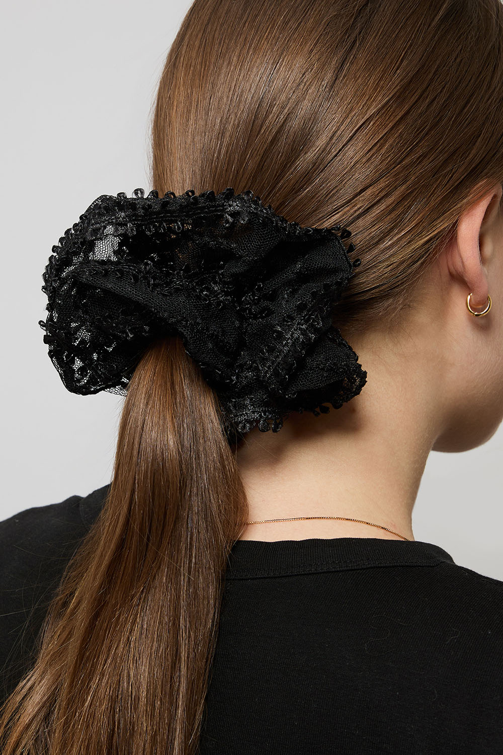 Iso musta hiusdonitsi pitsiä ryhmässä Hiustuotteet / Scrunchie-hiusdonitsit @ Glitter (332002079000)