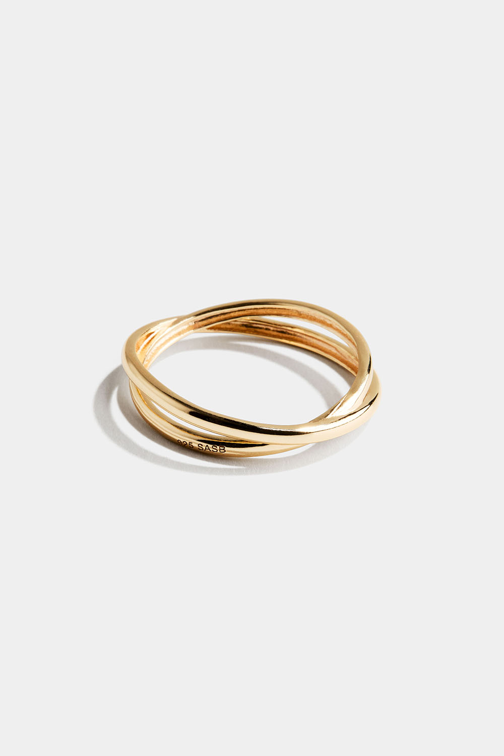 Kaksiosainen 18 karaatin kullattu hopeasormus, jossa ristiin menevä muotoilu