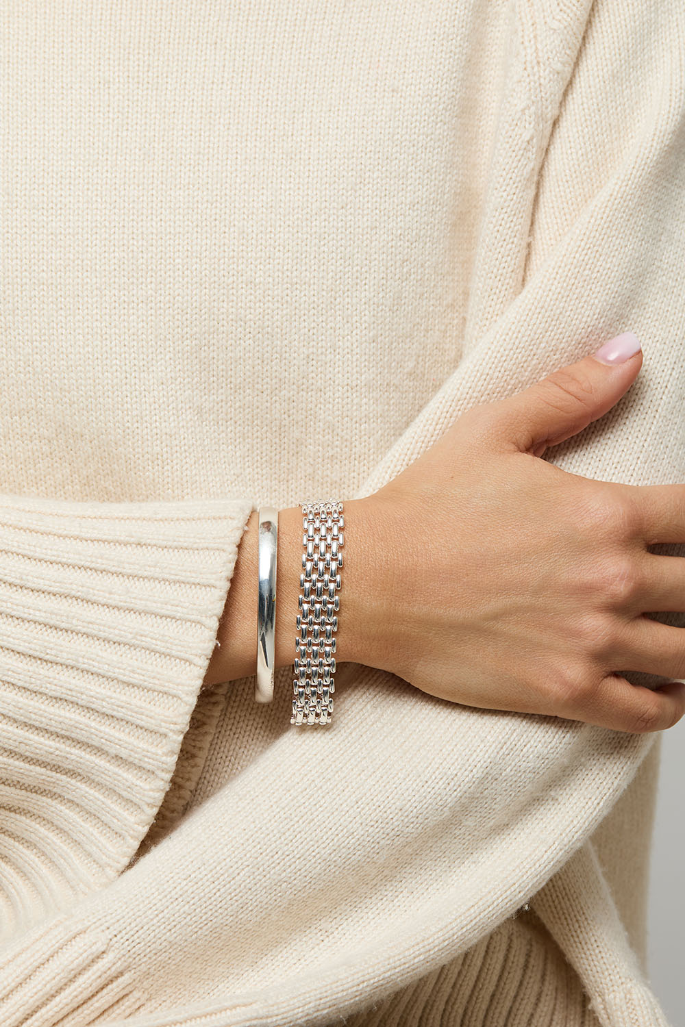 Klassinen rannekoru kiiltävästä metallista.