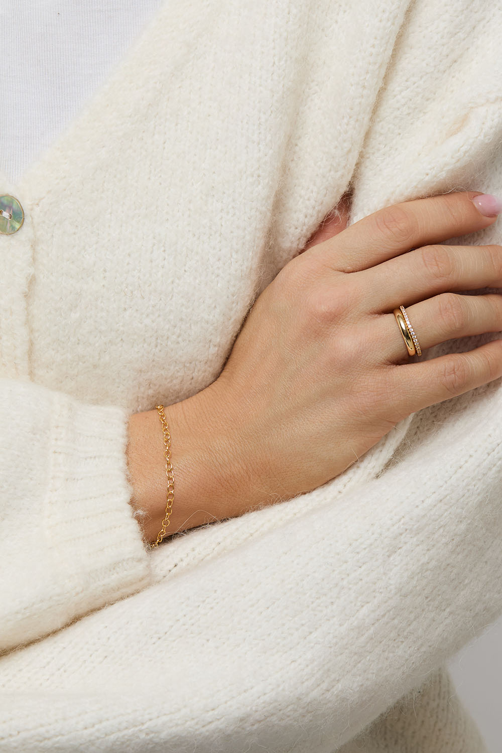 Ketjuranneketju, jossa on ohuita renkaita aitoa 18k kullattua hopeaa.