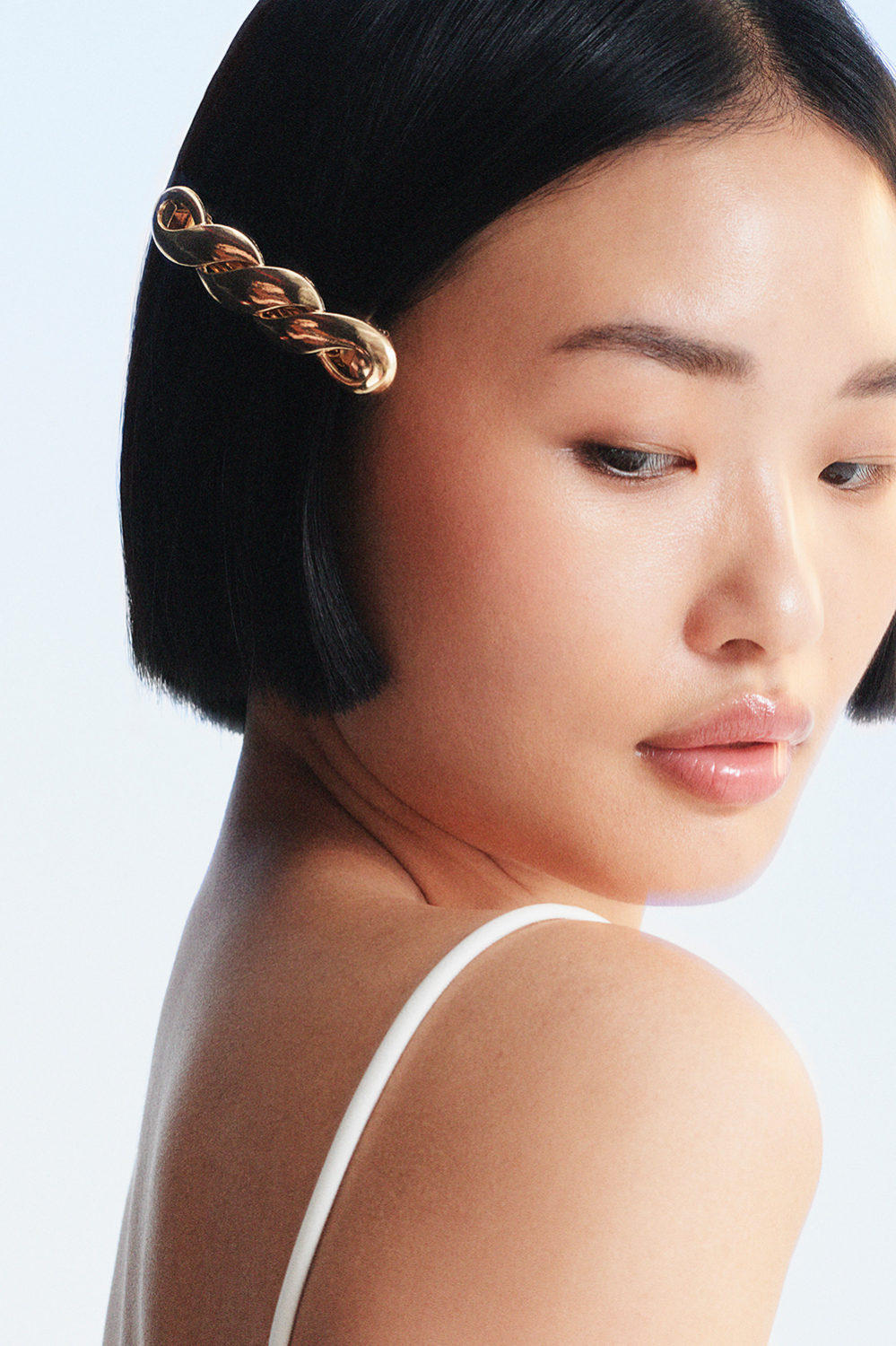 Kullanvärinen metallinen hiusklipsi kierretyllä muotoilulla