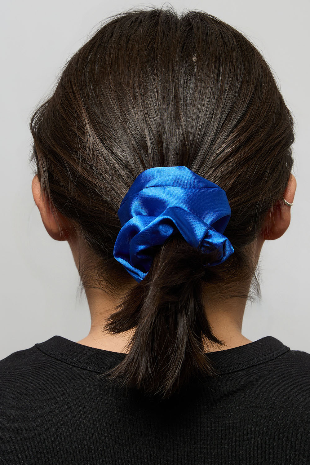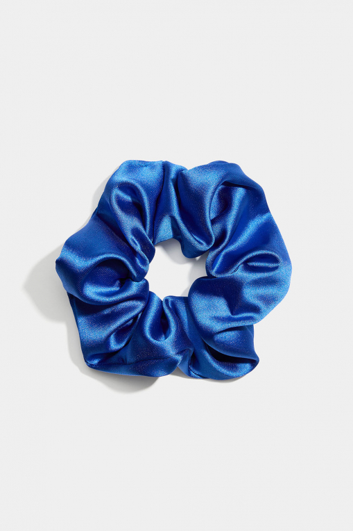 Pieni sininen hiusdonitsi kiiltävästä keinosilkistä. Klassinen hiusasuste, joka on hellävarainen hiuksille.