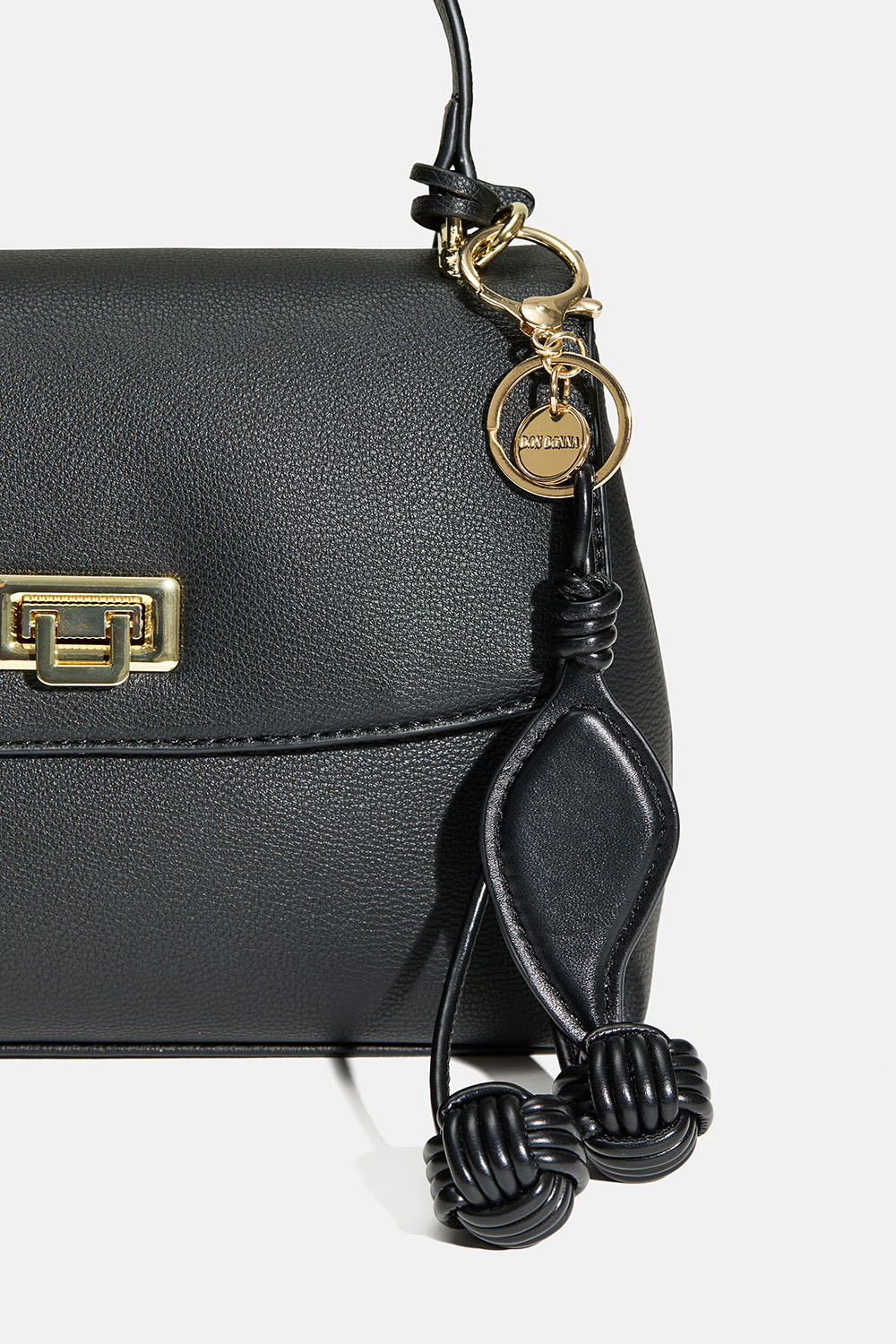 Kirsikka-aiheinen laukkukoriste mustaa keinonahkaa