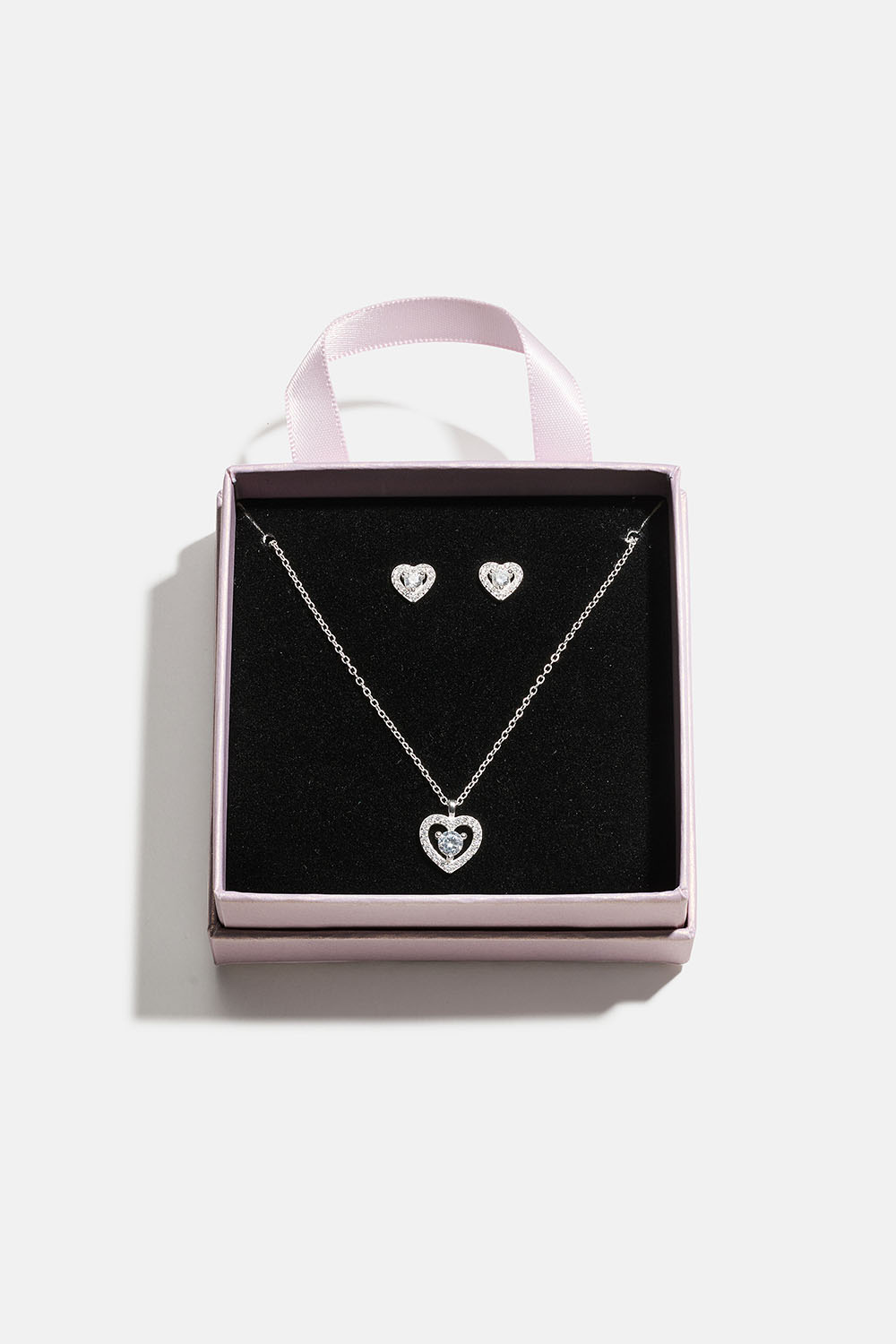 Korusarja koostuu aidosta hopeasta valmistetuista sydämillä ja Cubic Zirconia -kivillä koristelluista nappikorvakoruista ja kaulakorusta, jossa on sydänriipus ja Cubic Zirconia -kiviä, kauniisti pakattuna vaaleanpunaiseen lahjapakkaukseen, jossa on musta samettityyny.