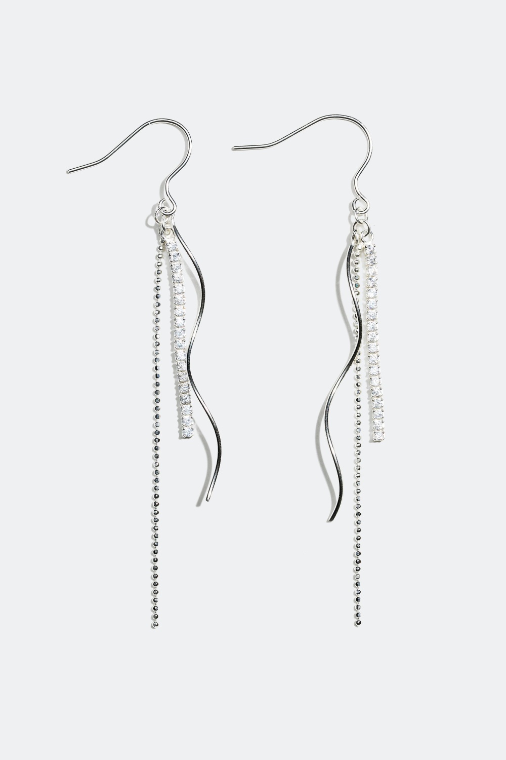 Korvakorut aitoa hopeaa kolmella roikkuvalla lenkillä ja pienillä Cubic Zirconia kivillä.