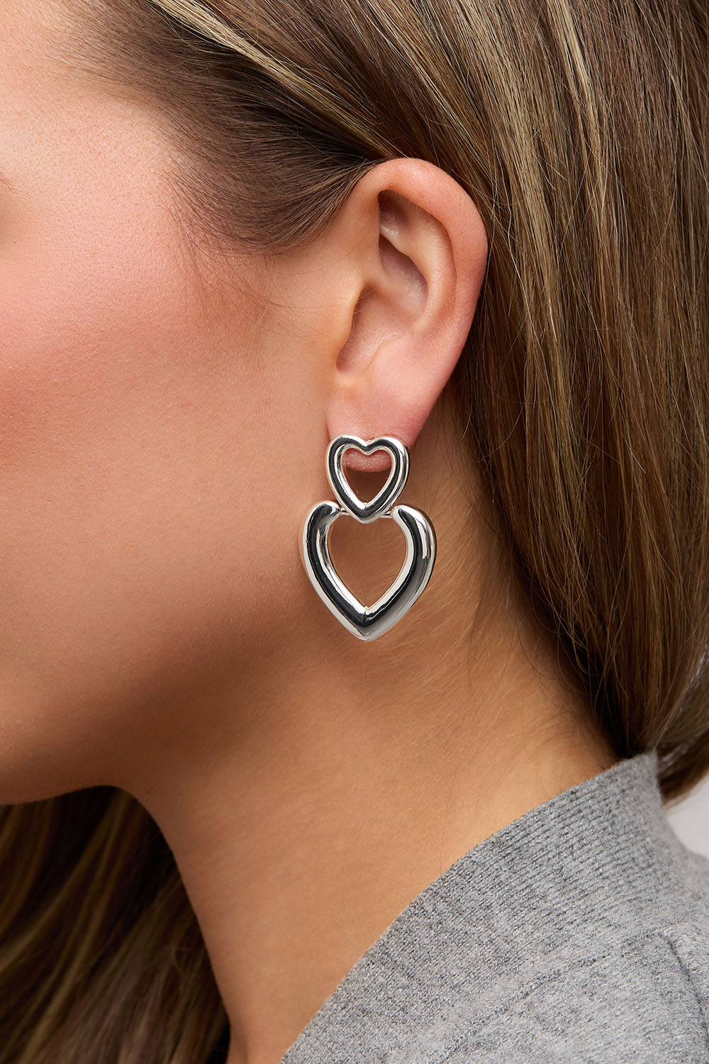 Korvarenkaat, joissa on kaksi eri kokoista rei'itettyä sydäntä.