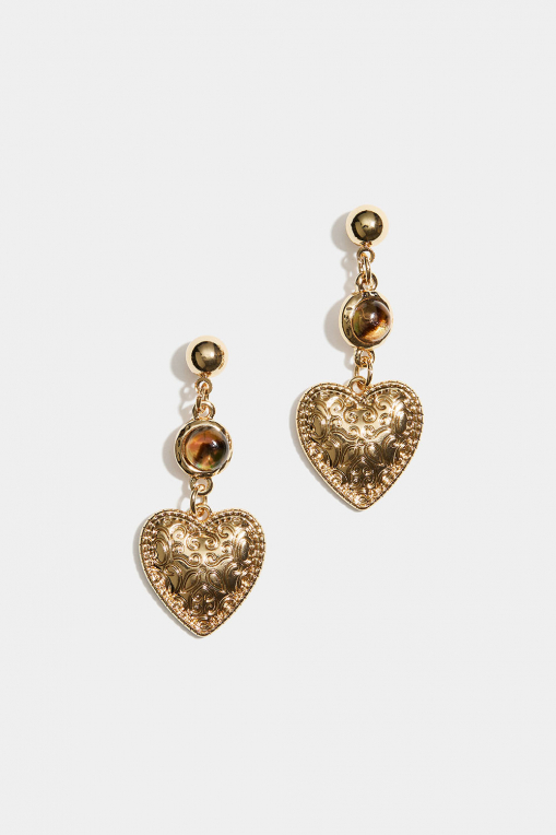 Korvakorut, joissa on kuvioituja sydämiä ja ruskeita helmiä ryhmässä Korut / Korvakorut @ Glitter (253011012002)