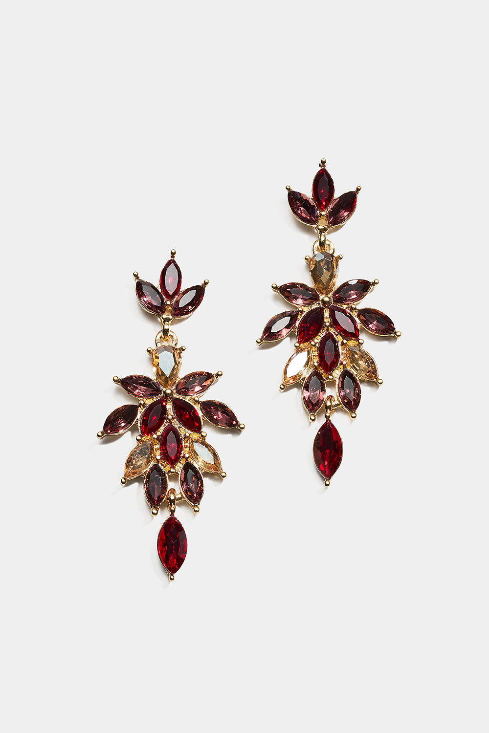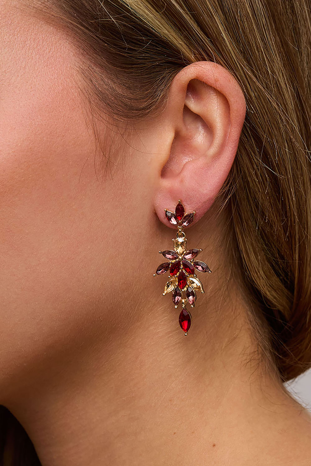 Korvakorut, joissa on vaaleanpunaisia ja punaisia lehdennmuotoisia lasikiviä ryhmässä Korut / Korvakorut / Strassikorvakorut @ Glitter (253010296402)