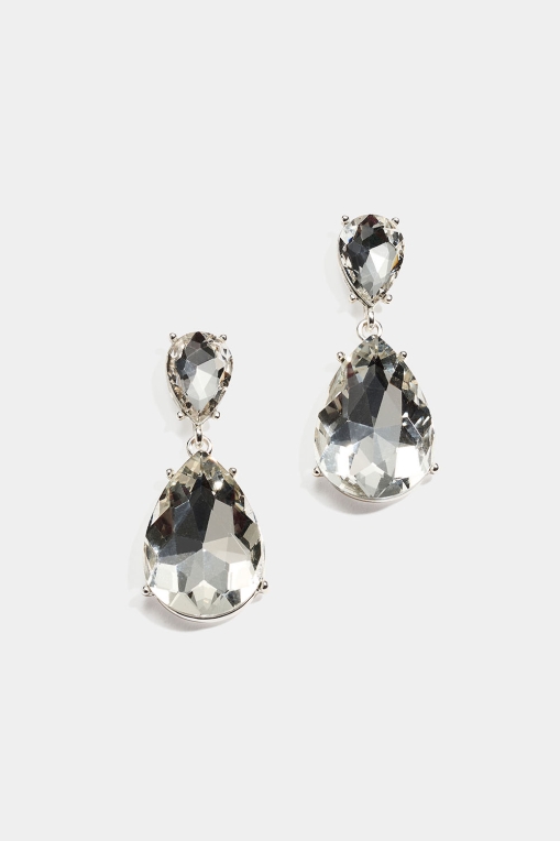 Korvakorut, joissa on valkoisia pisaranmuotoisia lasikiviä ryhmässä Korut / Korvakorut / Strassikorvakorut @ Glitter (253010390201)