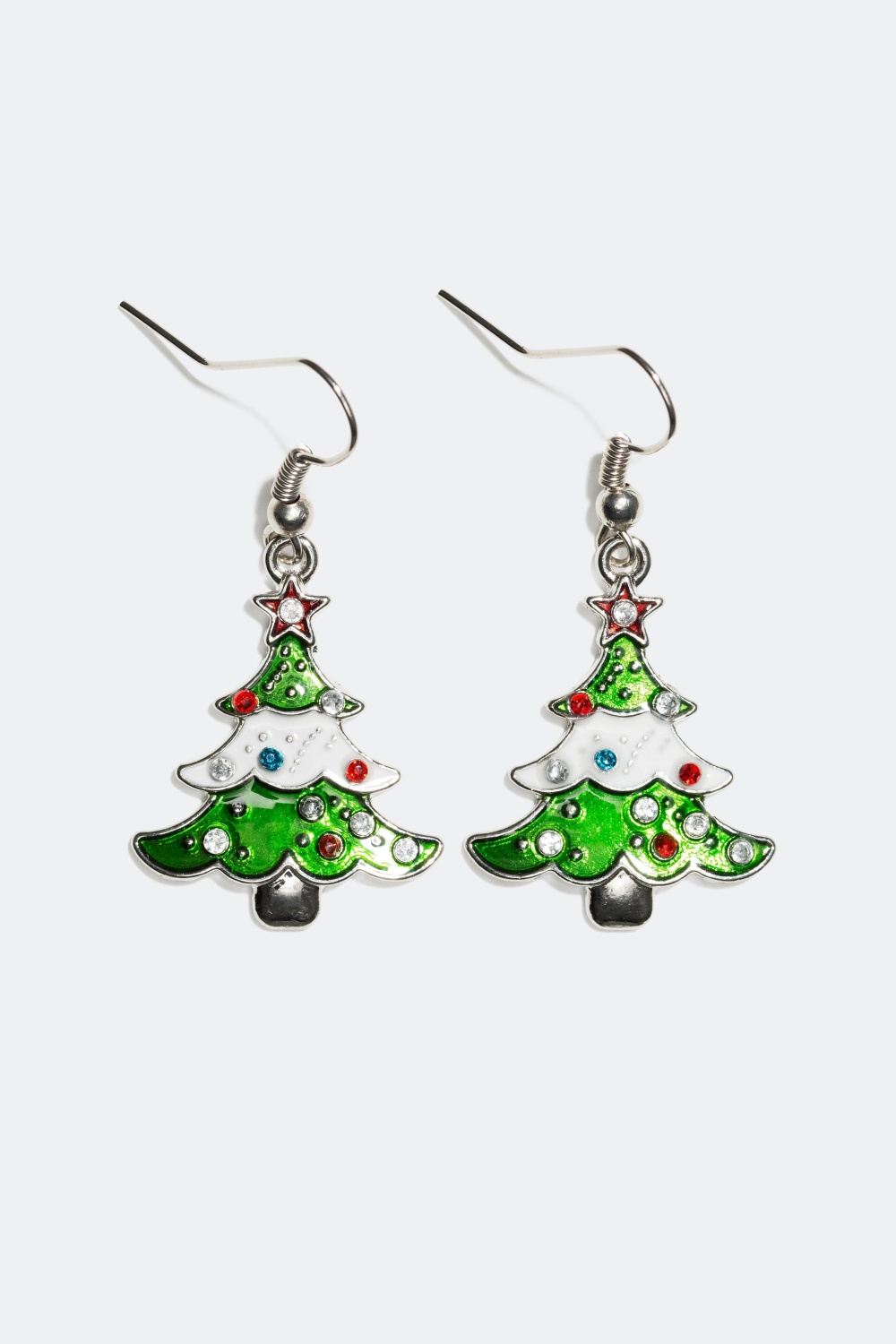 Korvakorut, joulukuusi - Koukulliset korvakorut, joita koristaa strassiset joulukuuset.