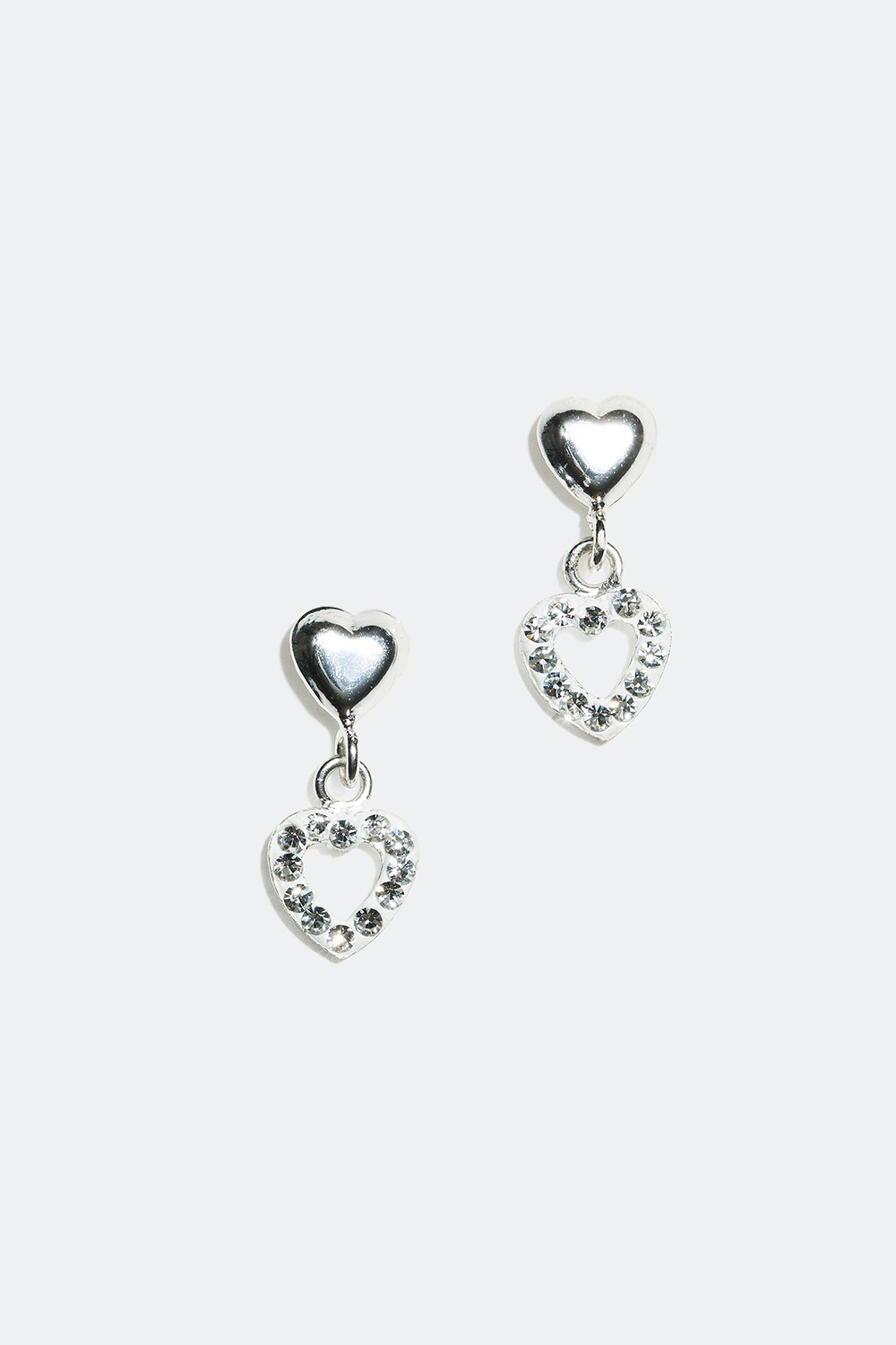 Korvakorut kahdella sydämellä, aitoa hopeaa - Aitohopeiset korvakorut on koristeltu kahdella sydämellä, joista toisessa on pieniä lasikiviä.