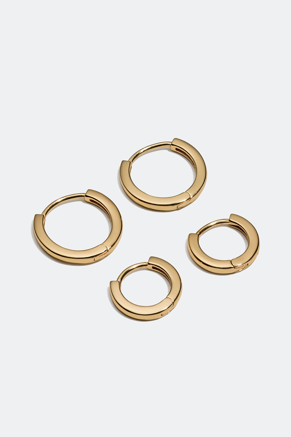 Kaksi paria eri kokoisia korvarenkaita aidosta 18k kullatusta hopeasta. Täydellinen yhdistelmä klassisia korvarenkaita, joita voit käyttää joka päivä joko erikseen tai yhdessä, jos sinulla on useita reikiä korvalehdessäsi.